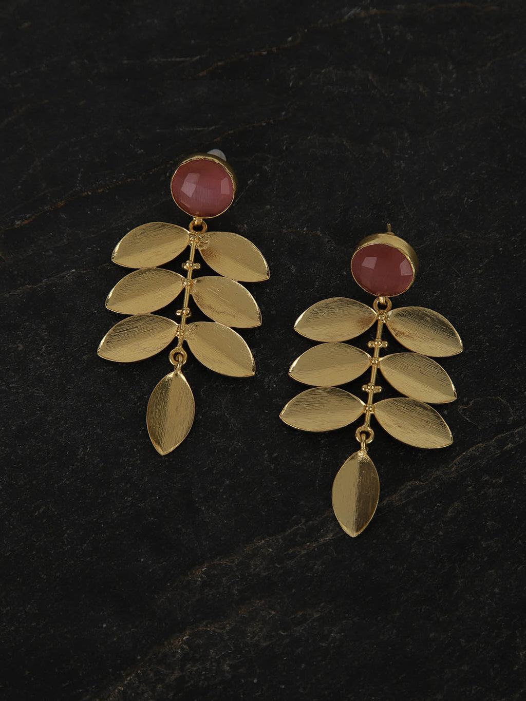 Gold Plated Dark Pink Drop Danglers