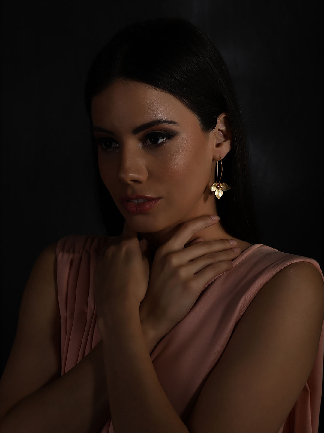 A mix of geometric and floral elements, these long loops are chic and modern. Pair them with your denims or your dresses, they work well either way.