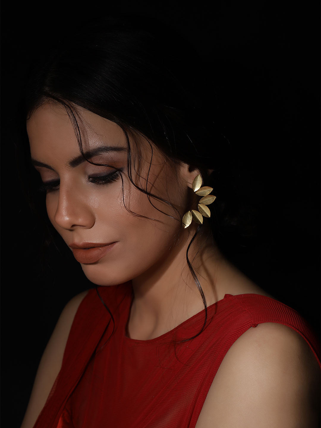 With handcrafted string of leaves in dull golden matte finish, these cuffs make you stand out and shine. Pair them with solids to give a touch of bling to your look.