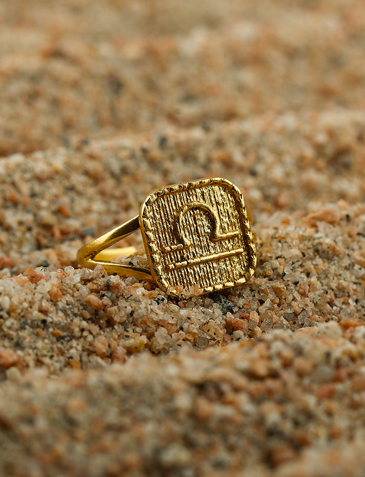 Gold Plated Libra Signet Ring