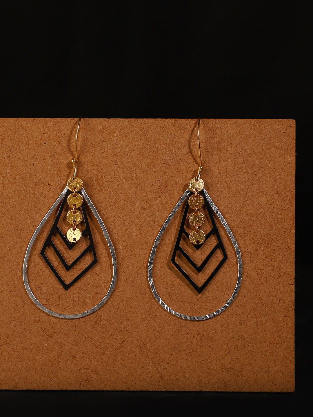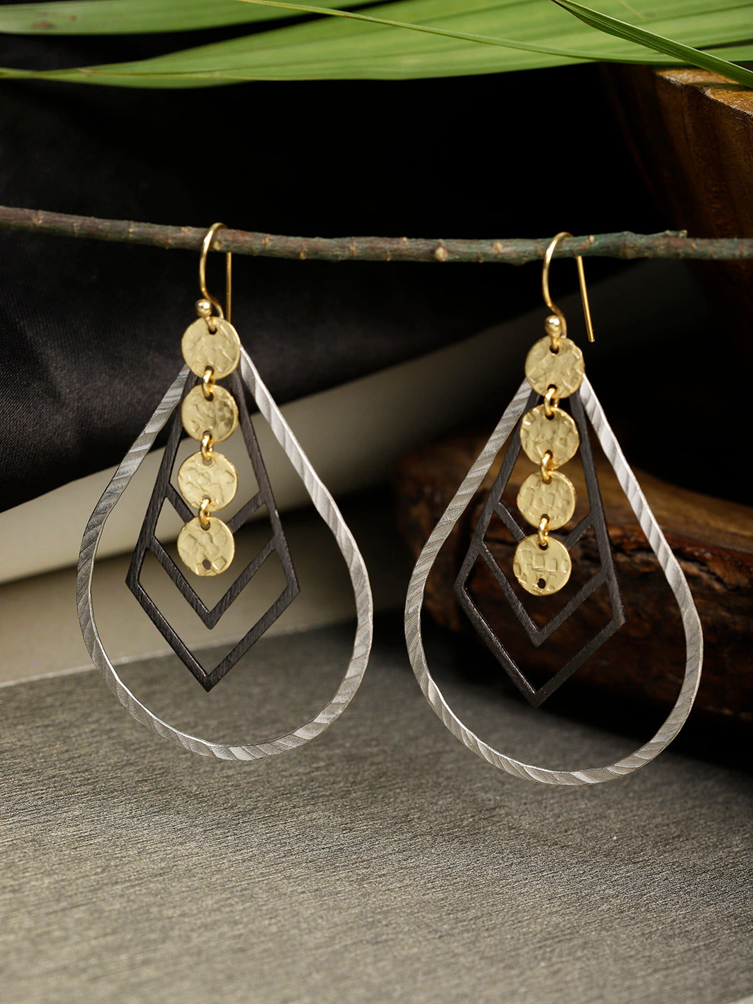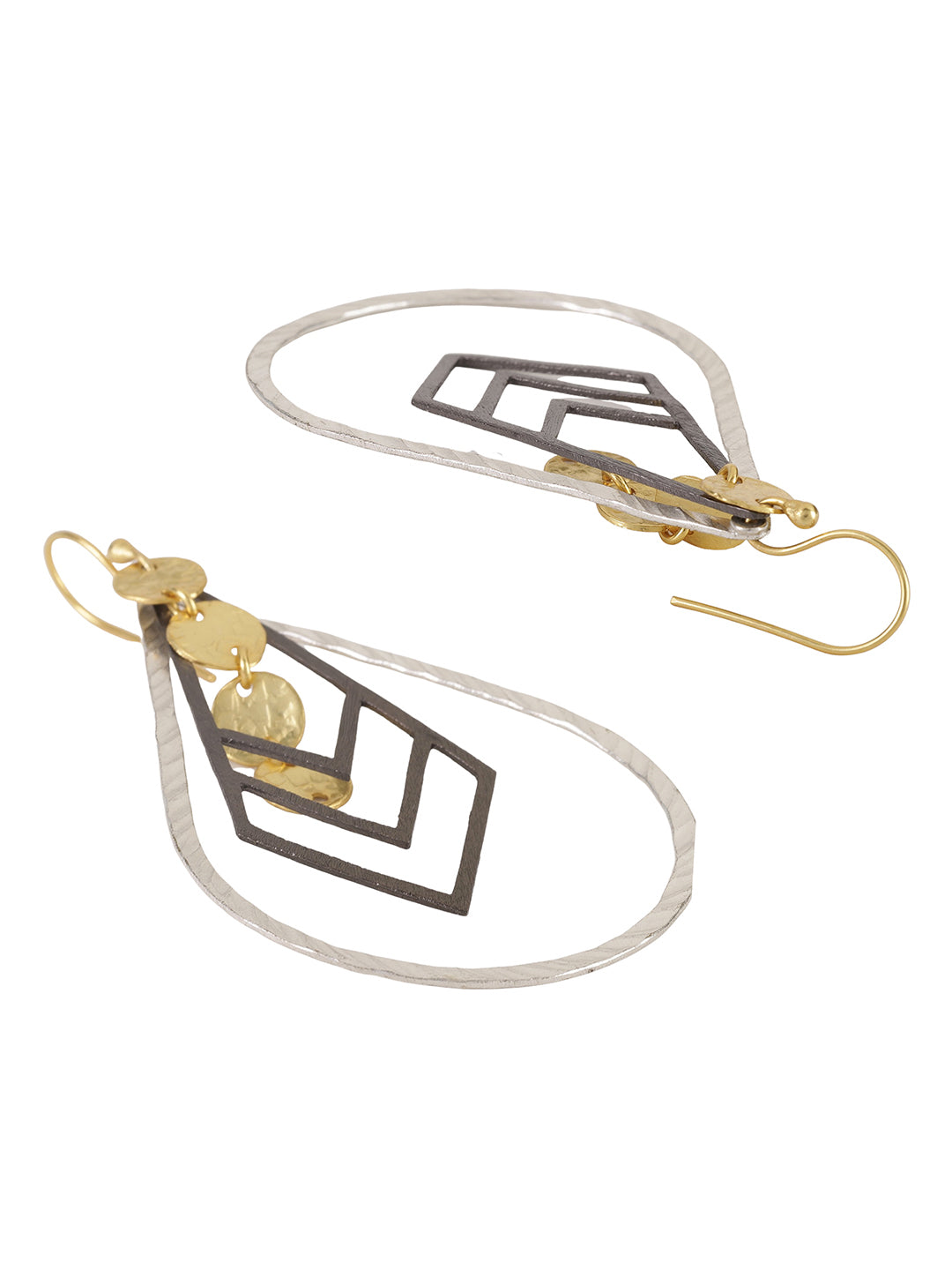 One of our more bold and risque designs, these earrings are here to make a statement. These loops have multiple layers with gold, silver and rhodium plating on different elements in the design which makes them very chic and they make for the perfect accessory to add the final touch to your glam look.